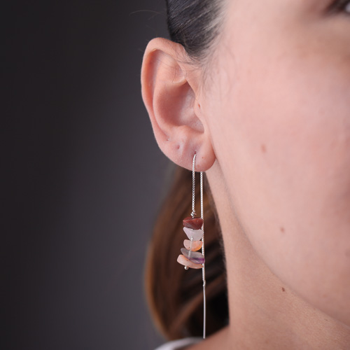Brinco Agulha Pedras Naturais – Prata 925