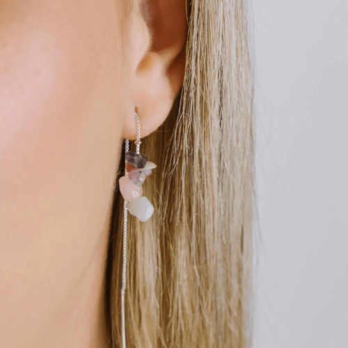 O Brinco Agulha Pedras Naturais da Vesty Prata, um par de brincos elegantes feitos de prata de alta qualidade. Com um design moderno, os brincos possuem uma agulha fina e pedras naturais na ponta.