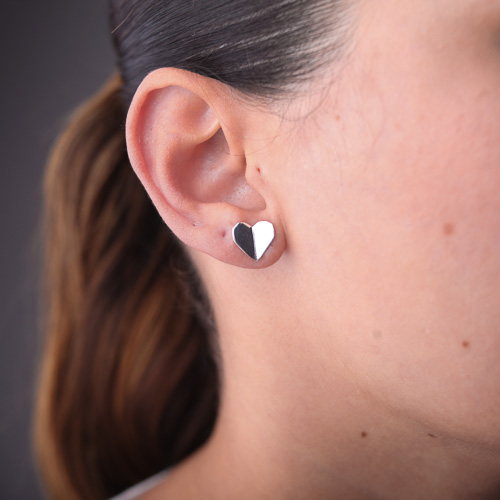 Brinco Coração Origami- Prata 925