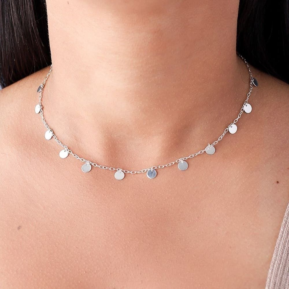 Design único e estiloso. Possui treze moedas penduradas ao longo da corrente, criando um visual encantador. Feita de prata de alta qualidade, essa choker é ajustável para se adequar ao tamanho desejado. É uma peça versátil que pode ser usada sozinha ou combinada com outros colares para criar camadas. Ideal para adicionar um toque de estilo e elegância ao seu look.