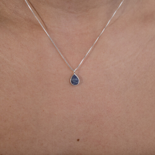A Choker Sodalita Gota une a elegância da prata 925 com a delicadeza das pedras naturais de sodalita em formato gota, com aproximadamente 5 mm. Com comprimento total de 40 cm e extensor de 5 cm, oferece ajuste confortável e versátil para diferentes estilos e ocasiões. O formato gota traz um toque de sofisticação e feminilidade, enquanto a cor azul intensa da sodalita realça o charme do acessório, perfeito para compor looks casuais ou mais sofisticados.