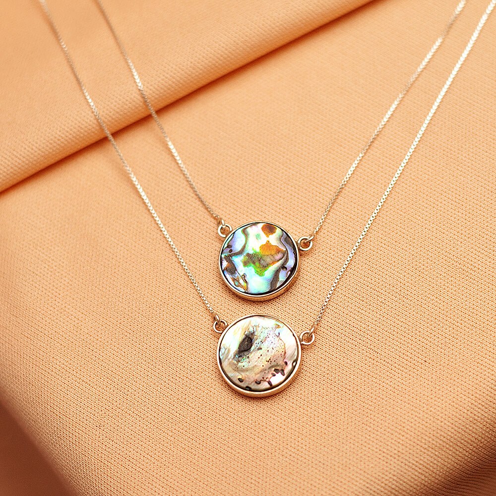 Por se tratar de uma pedra natural, o Abalone pode apresentar variações de formato, tonalidade e padrões nos desenhos, tornando cada peça única.