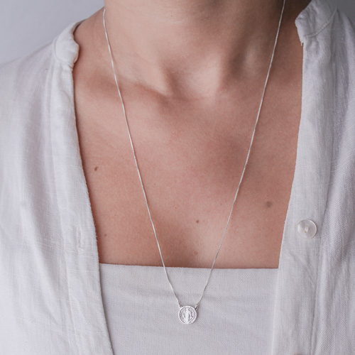 Explore a proteção e a tradição do Escapulário São Bento de Prata da Vesty Prata. Este belíssimo escapulário é confeccionado em prata de lei, destacando-se pela sua elegância e significado espiritual.
